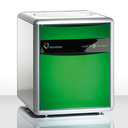El analizador de nitrógeno proteína Elementar Rapid N Exceed, ofrece la determinación de nitrógeno y proteínas en menos de cuatro minutos. Su muestreador automático, se puede recargar en cualquier momento y ofrece análisis automatizados para mediciones de hasta 300 muestras por día.